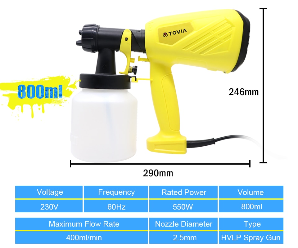 TOVIA 550W Electric Spray Gun 800ML HVLP Paint Sprayer 230V