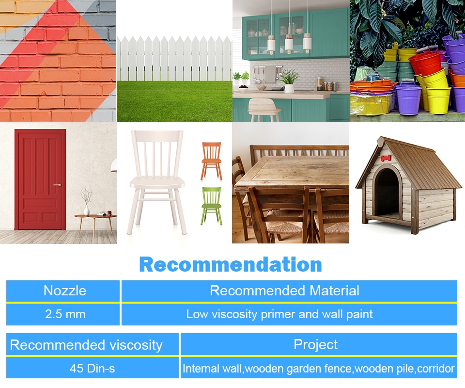 Regulate suitable paint output speed through flow control knob.Paint powerfully in large area and slowly in narrow space.